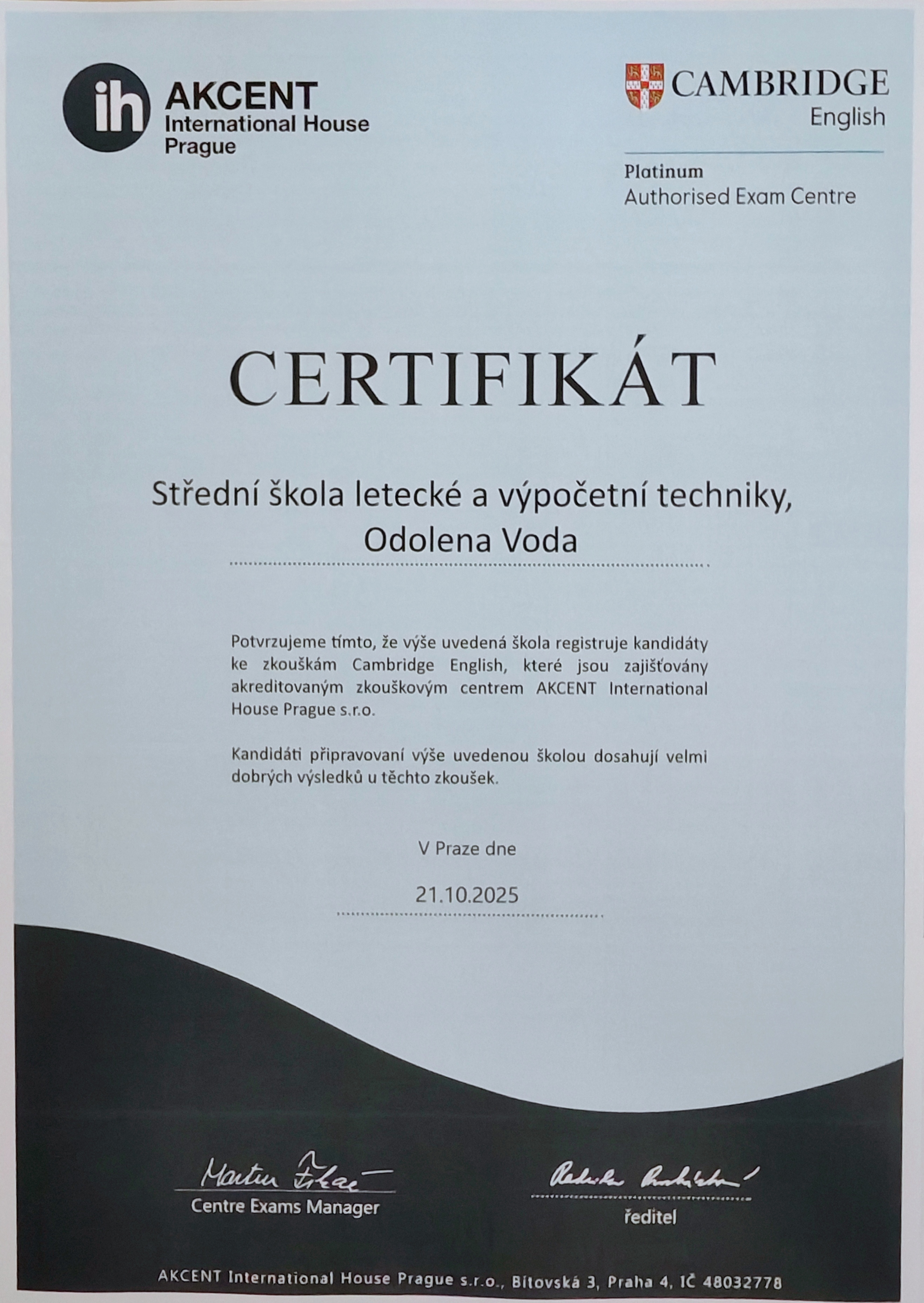 Naše škola je partnerským přípravným centrem akreditovaného zkouškového centra AKCENT International House Prague, které organizuje mezinárodní jazykové zkoušky Cambridge English Qualifications.