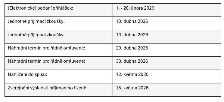 • Konečný termín odevzdání přihlášky je 20. 2. 2026. Elektronickou přihlášku bude možné podat od 1. 2. 2026.